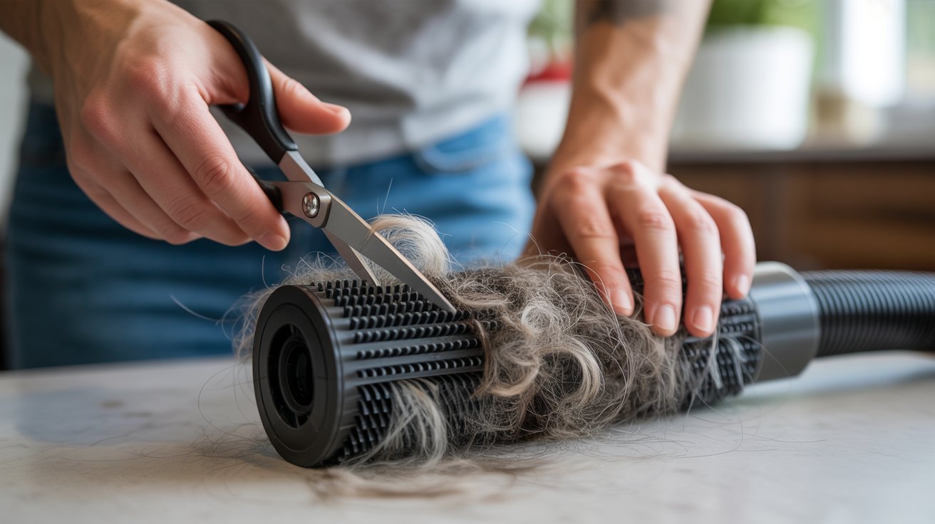 Hair tangles when brush rolls spin at high speed. Anti-tangle or rubber brush designs help reduce wrapping.